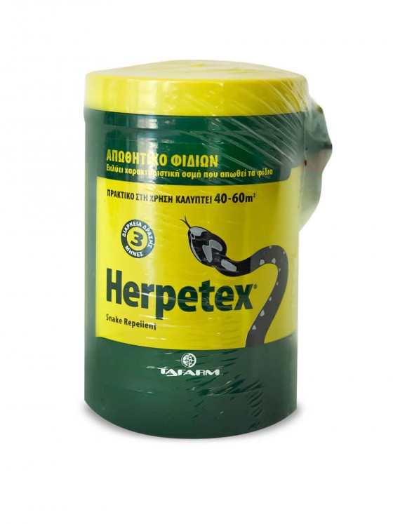[value] => Το HERPETEX είναι ακίνδυνο απωθητικό φιδιών για χρήση σε εξωτερικούς χώρους. Είναι πρακτικό στη χρήση και καλύπτει 40-60m2. Εκλύεται σταδιακά μία έντονη και δυσάρεστη οσμή για τα φίδια. Τα ερπετά που έχουν αναπτυγμένη όσφρηση όταν αντιλαμβάνονται τη χαρακτηριστική οσμή που αναδίδεται από το προϊόν ενοχλούνται και τρέπονται σε φυγή.