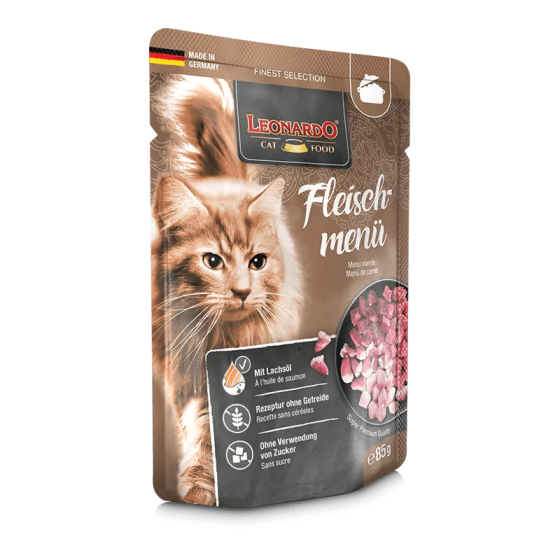 Πολλές γάτες υποφέρουν από δυσανεξία στα δημητριακά, η οποία εκδηλώνεται με συμπτώματα όπως προβλήματα δέρματος και τριχώματος, κνησμό, πεπτικά προβλήματα και διάρροια. Η Leonardo Finest Selection δεν περιέχει πρόσθετα δημητριακά, και επομένως είναι ιδανική για γάτες με διατροφικές ευαισθησίες και αλλεργίες. Οι γάτες είναι μικρά σαρκοφάγα ζώα, αξιοποιούν ιδιαίτερα καλά τις ζωικές πρωτεΐνες. Για την παρασκευή της Leonardo Finest Selection χρησιμοποιείται αποκλειστικά άριστο κρέας, το οποίο έχει αξιολογηθεί ως κατάλληλο για ανθρώπινη κατανάλωση. Προέρχεται από γερμανικές φάρμες και επεξεργάζεται νωπό από το σφαγείο. Η ρέγγα και οι γαρίδες επεξεργάζονται αμέσως μετά την αλίευσή τους, όσο είναι ακόμη φρέσκιες, και αποτελούν ιδανική πηγή ωμέγα-3 λιπαρών οξέων και πολύτιμης πρωτεΐνης. Δεδομένου ότι επεξεργάζονται μόνο πρώτες ύλες άριστης ποιότητας, αυτή η ζωοτροφή προσφέρει υψηλή βιολογική αξία. Η προσθήκη ελαίου σολομού μπορεί να υποστηρίζει την υγεία του δέρματος και του τριχώματος, καθώς το λάδι σολομού είναι μια εξαιρετική πηγή ωμέγα-3 λιπαρών οξέων. Η προσθήκη ταυρίνης μπορεί να υποστηρίζει την όραση και τη λειτουργία της καρδιάς, ενώ παράλληλα εμπλουτίζει αυτά τα γευστικά μενού με μια ουσία ζωτικής σημασίας για τις γάτες. Η Leonardo Finest Selection δεν περιέχει τεχνητές χρωστικές, αρώματα ή συντηρητικά.