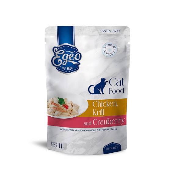 Egeo Cat Adult Με Κοτόπουλο & Κράμπερι Κρίλ σε Ζώμο Pouch 85gr