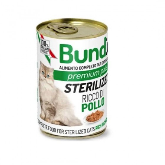 Υγρή τροφή σε μορφή πατέ, από την Bundy, κατάλληλη για ενήλικες στειρωμένες γάτες. Περιέχει λίγες θερμίδες, χαρακτηριστικό που βοηθάει στην διατήρηση του ιδανικού βάρους και συμβάλλει στη συντήρηση της υγείας του ουροποιητικού.